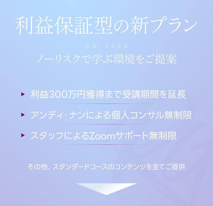 2020年は、アンディメソッドで3か月で2倍を信じて、8倍の資産増大に向けて頑張りたいと考えています。また安心して自分のやりたい仕事にじっくり取り組むため、副収入である程度収入を補助できるのであれば、その方がよいと考え、今回参加を決断いたしました。