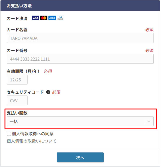 ※お使いのカード会社が提供する分割払いはVISAかMASTERカードのみの取り扱いです。